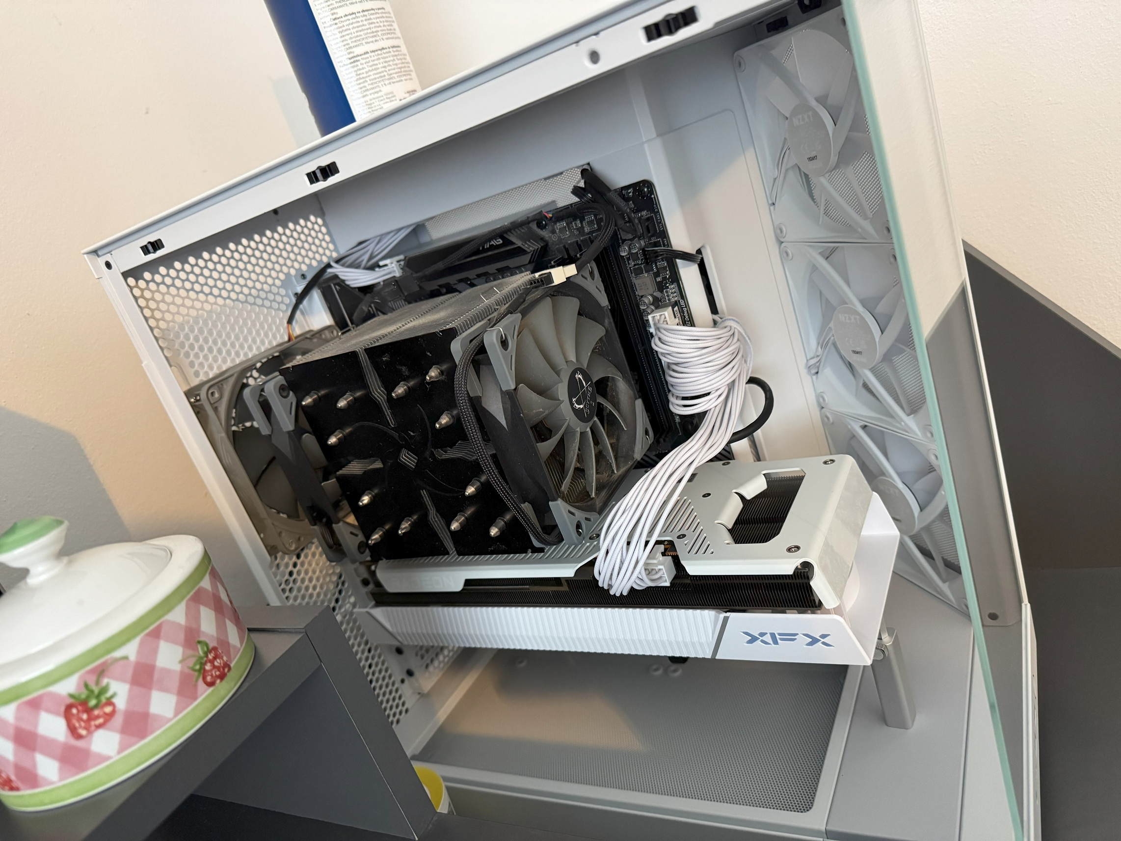 NZXT H6 Flow MB MSI MAG B550 TOMAHAWK CPU AMD Ryzen 5 5600X GPU XFX Quicksilver AMD Radeon RX 7800 XT RAM Kingston Fury 32GB HDD SSD M.2 ADATA XPG Gammix S11 1TB HDD 2 TB PSU Seasonic Focus GX-850 AOC C24G1 144Hz Mobil Apple iPhone 15Pro 256GB Tablet iPad Air M2