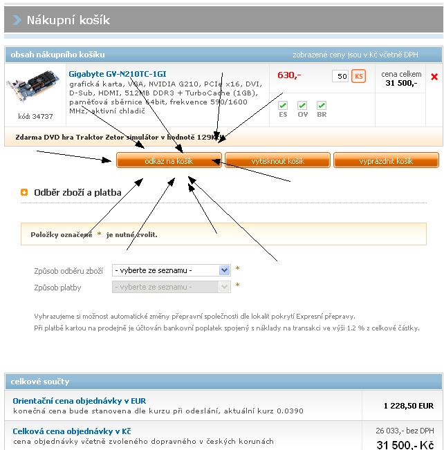 pochybuji, že budeš mít lepší sestavu, než já, ale máš právo ji sem dát. Musíš ale nejprve správně vyexpertovat odkaz na košík a to uděláš takhle:
