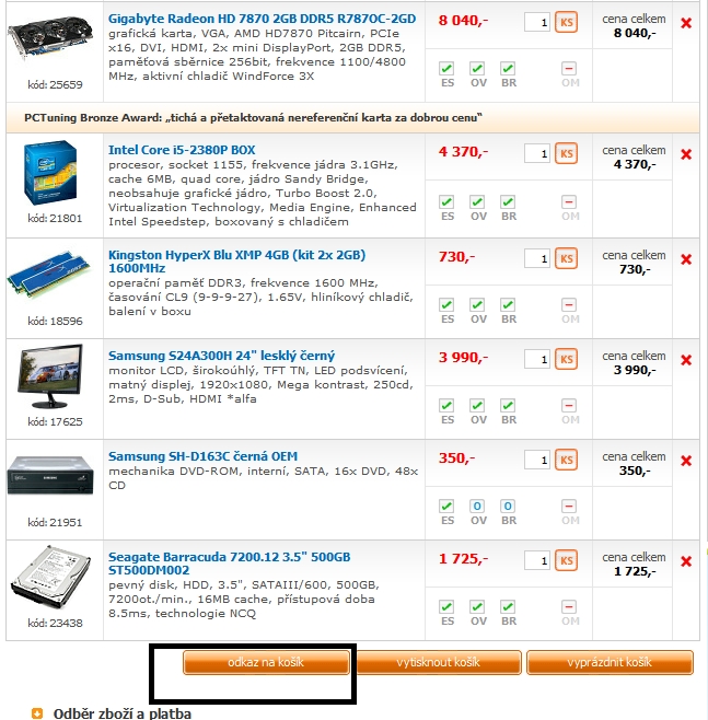 Vycházím z toho, že jednou nadhodíš sestavu za 41000,- a vzápětí to srovnáváš s košíkem, kde je PC za 26000,-.