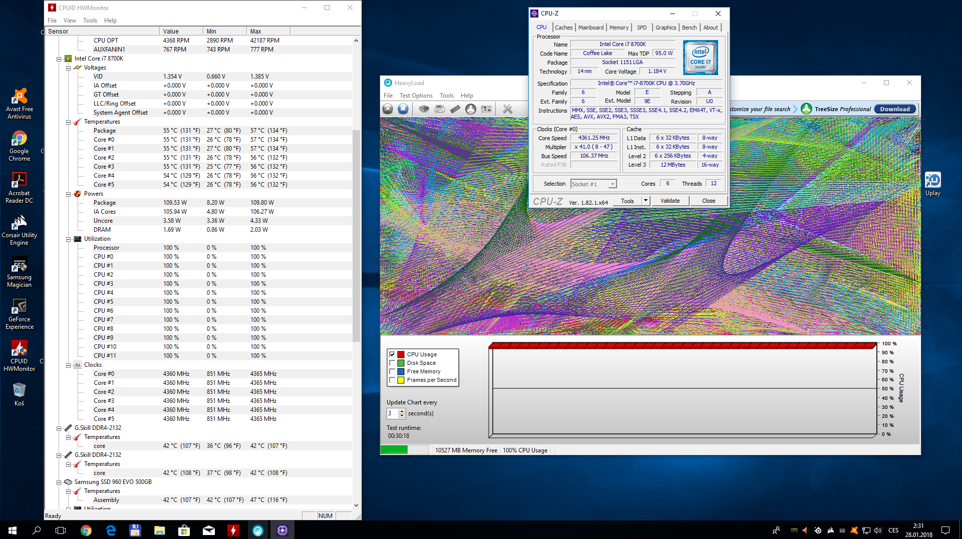 MB: ASROCK Fatal1ty Z370 Gaming K6 CPU: Intel Core i7-8700K @ 5,1GHz/4,9 AVX/4,6 cache; 1,41V Delid FAN: NZXT Kraken X62 RAM: G.SKILL 2x8GB DDR4 3800MHz @ CL16 TridentZ 1,5V GPU: Zotac GTX 1080Ti AMP Extreme Core Edition (11GB) SSD: Samsung 960 EVO 500GB, 850 EVO 500GB, 840 EVO 120GB HDD: WD Blue 2x4TB PSU: Corsair RM850i Case: Fractal Design Define R6 Black TG Monitor: BenQ XL2411Z