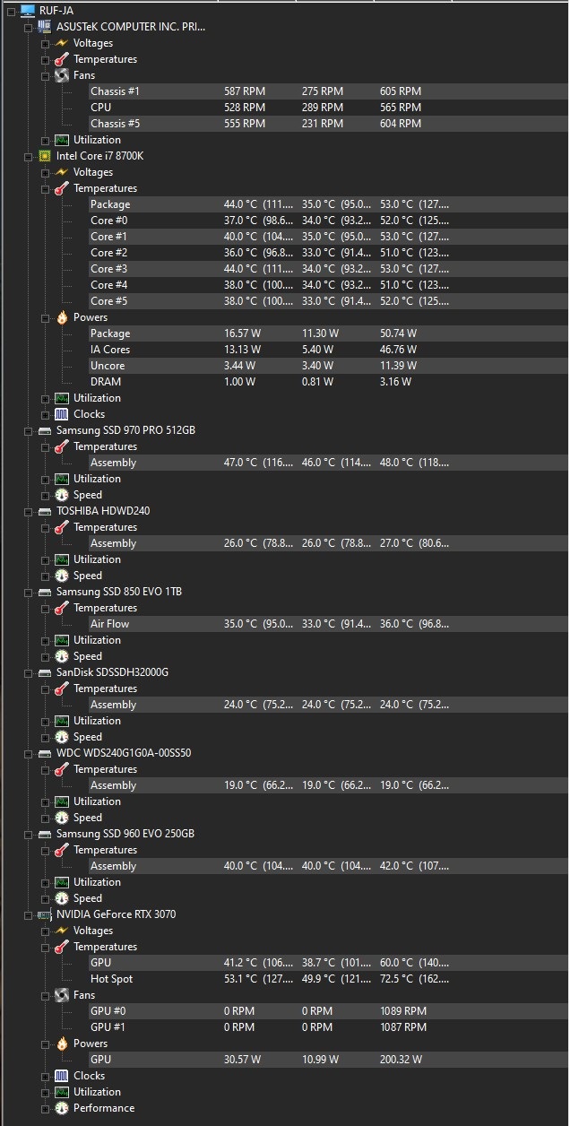 MB: ASUS PRIME Z370-A; CPU: Intel Core i7-8700K + Noctua NH-D15; RAM: Crucial Ballistix 32GB DDR4 3600MHz CL16; VGA: ASUS GeForce RTX 3070 Noctua OC Edition; SSD: Samsung SSD 970 PRO 512GB + Samsung SSD 960 EVO 250GB + Samsung SSD 860 EVO 4TB; PSU: Seasonic FOCUS Plus 750 Platinum; CASE: Fractal Design Define R5; LCD: Dell AW3418DW Alienware; KEYBOARD: Logitech G910; MOUSE: Logitech G502 Hero; HEADPHONES: Logitech G635