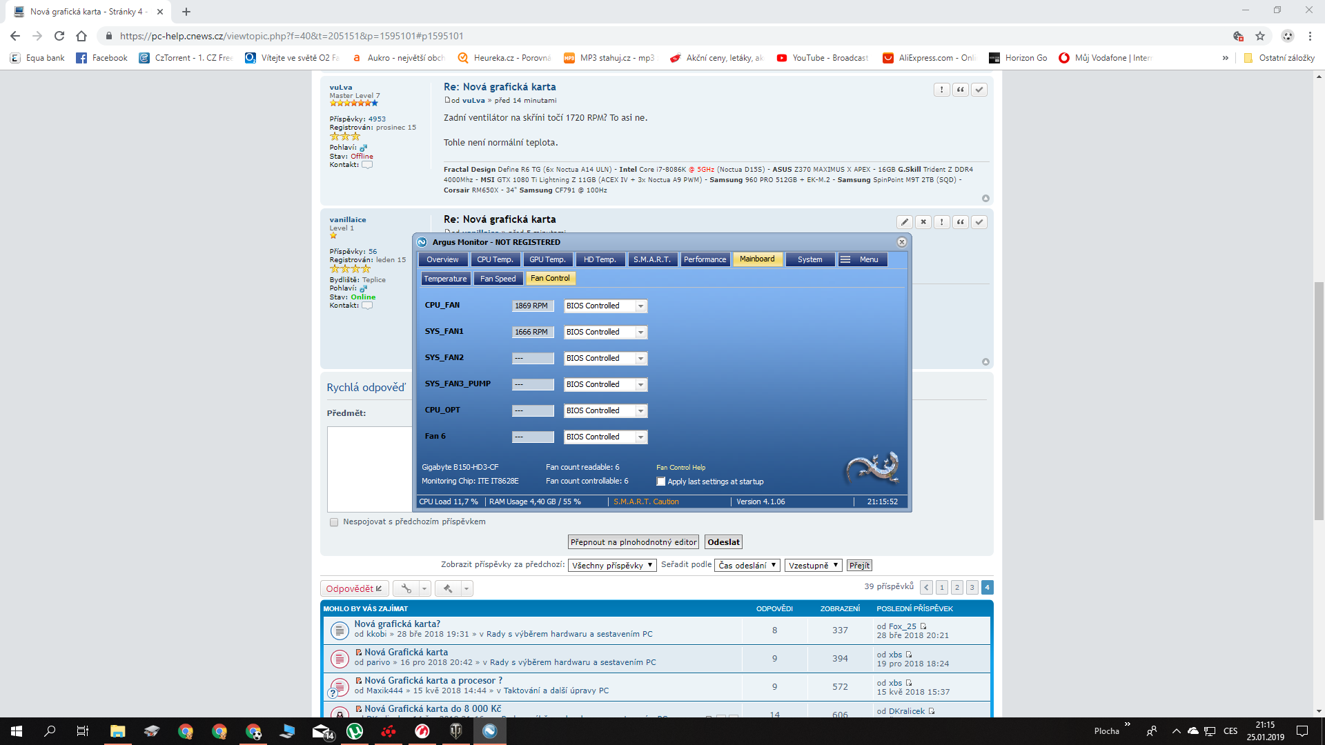 Psal si, že zadní ventilátor se točí málo oproti předku. Co tam máš vůbec za ventilátory (výrobce, model)? Opravdu fouká zadní ventilátor teplý vzduch ven?