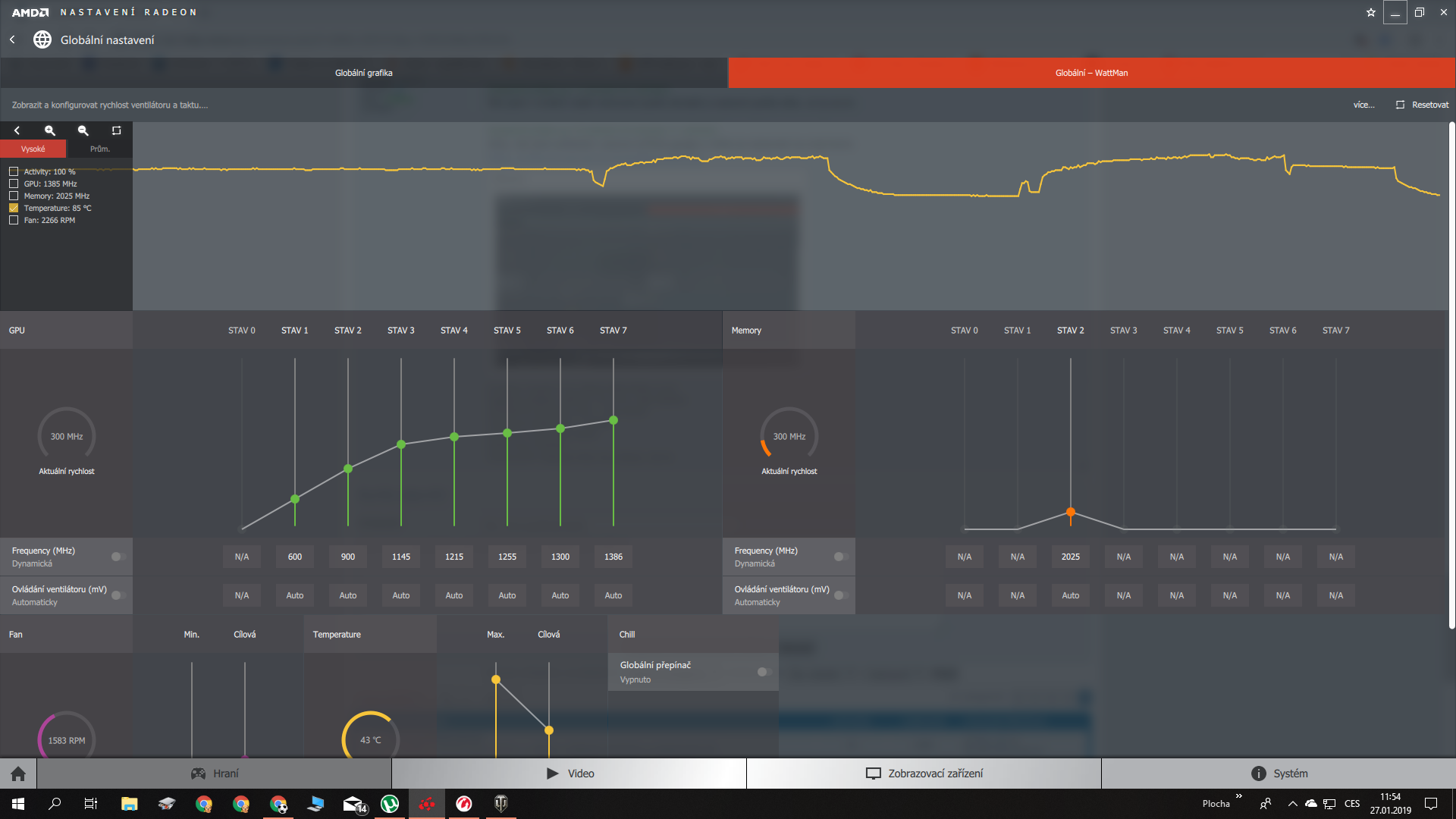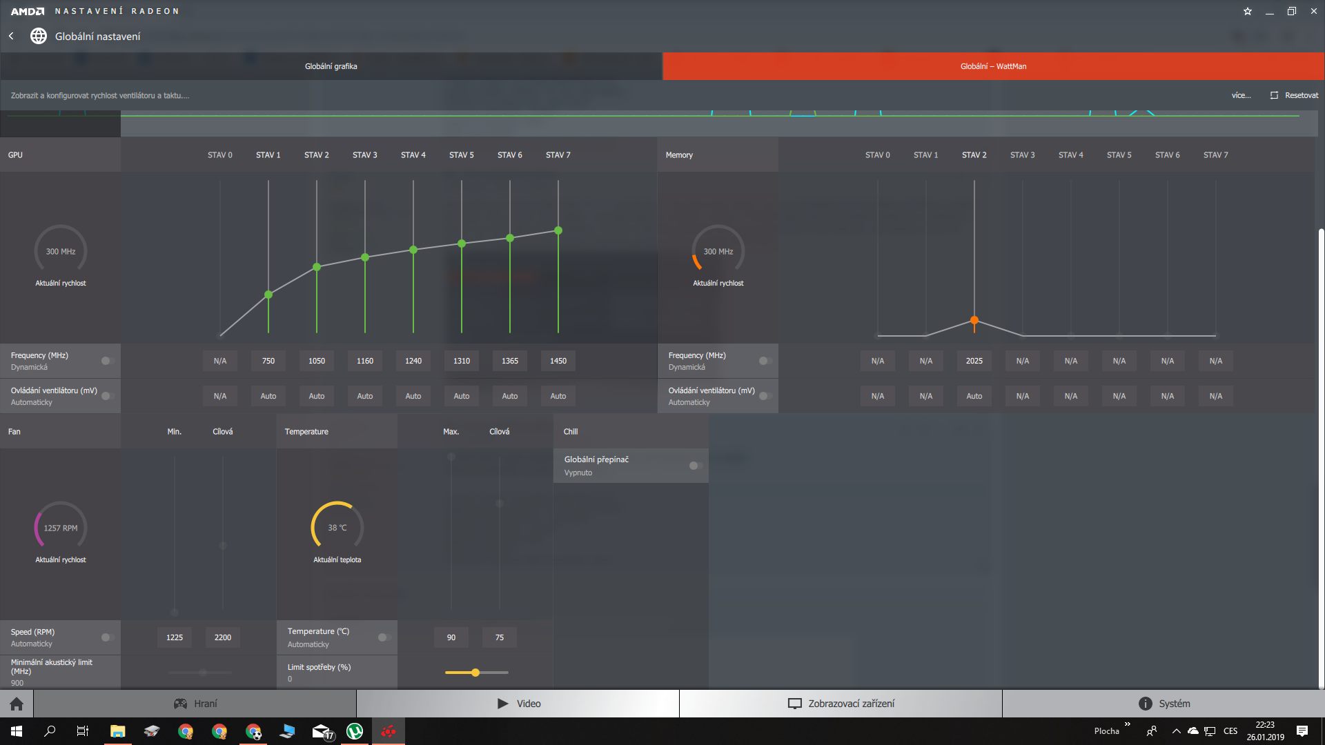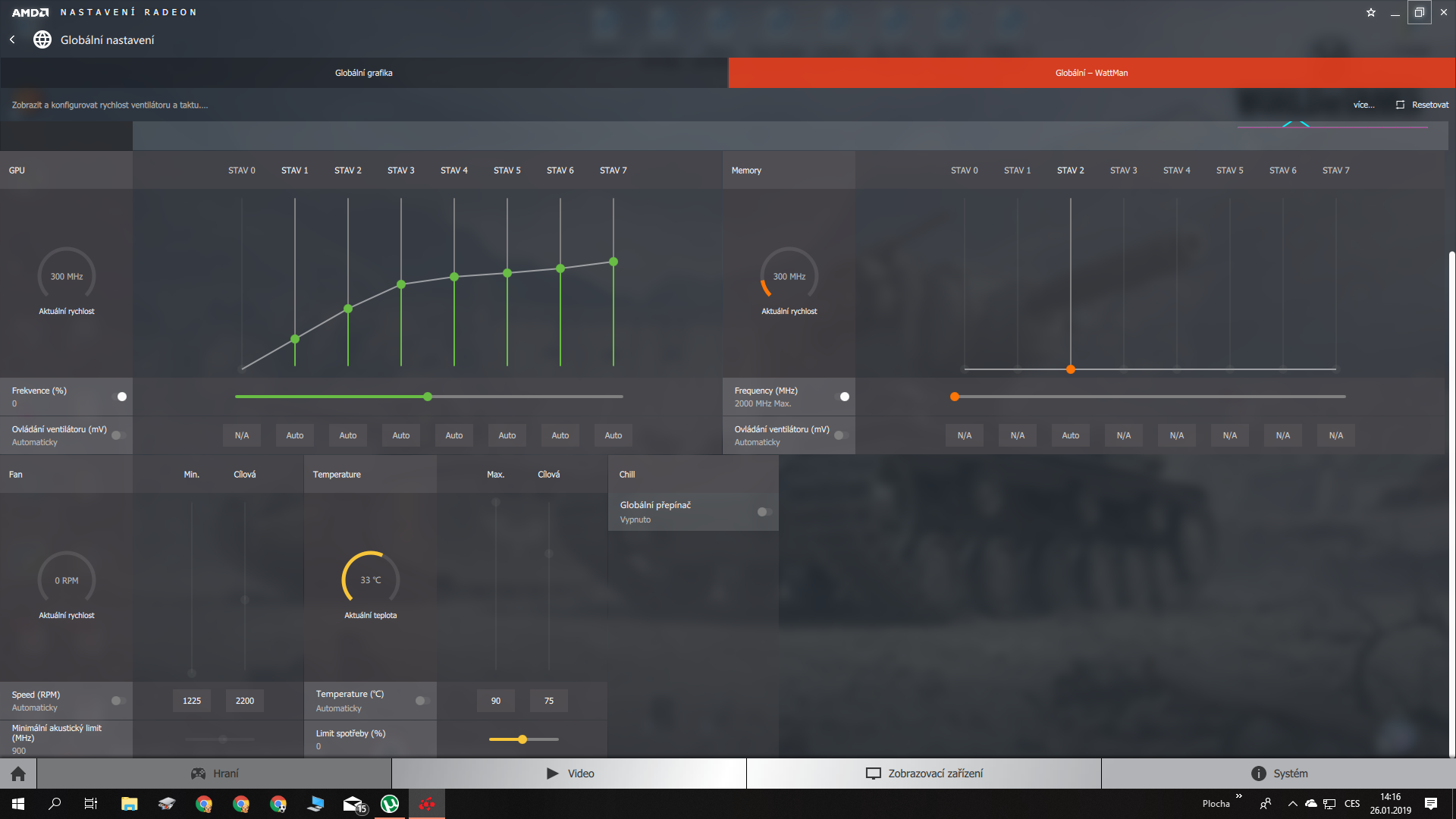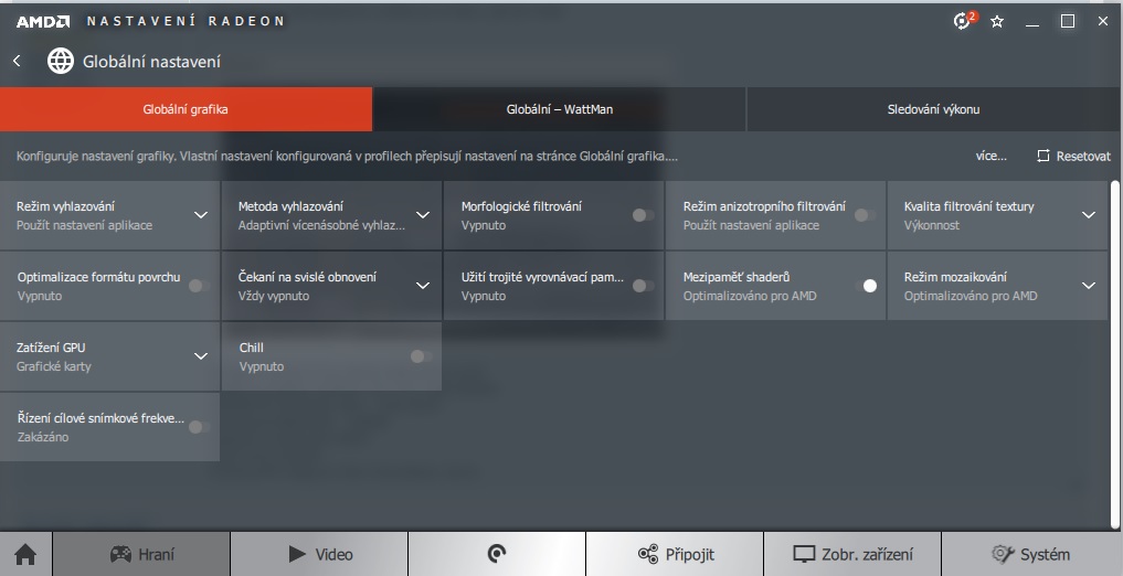 Co to máš za verzi prosímtě? Mám 19.1.1 a už od 18.x.x tam posuvníky nejsou, tzn ty si nemůžeš nastavit otáčky ventilátoru. Budem pracovat s tím co máš. Zjisti někdy v manuálu nebo na tránkách výrobce, či někde jinde kolik max otáček zvládnou ty ventilátory a nastav to u nich jako cílovou hodnotu. Pod tím minimální akustický limit posun posuvník na max doprava. Max teplotu nastav 85, cílovou 70. Ještě přikládám globální nastavení grafiky, třeba se ti taky může hodit.