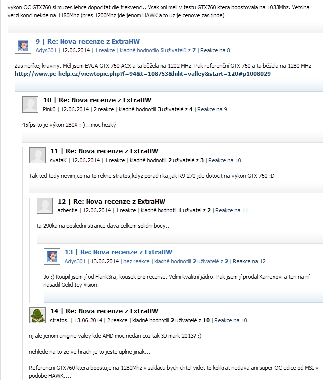 Kdo pročítal téma s Unigine Valley, tak ví, že GTX 760 se skvěle taktuje, pár lidem šla i přes 1300 MHz. Jen já jsem měl s EVGA smůlu, šla jen na 1202 MHz, což je i podle stratose úžasný výsledek. Zkrátka neví o čem mluví.