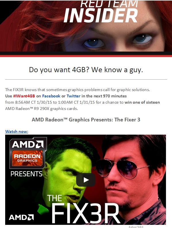 AMD se chyby GTX 970 snaží využít co nejvíce. Právě mi přišla reklama.