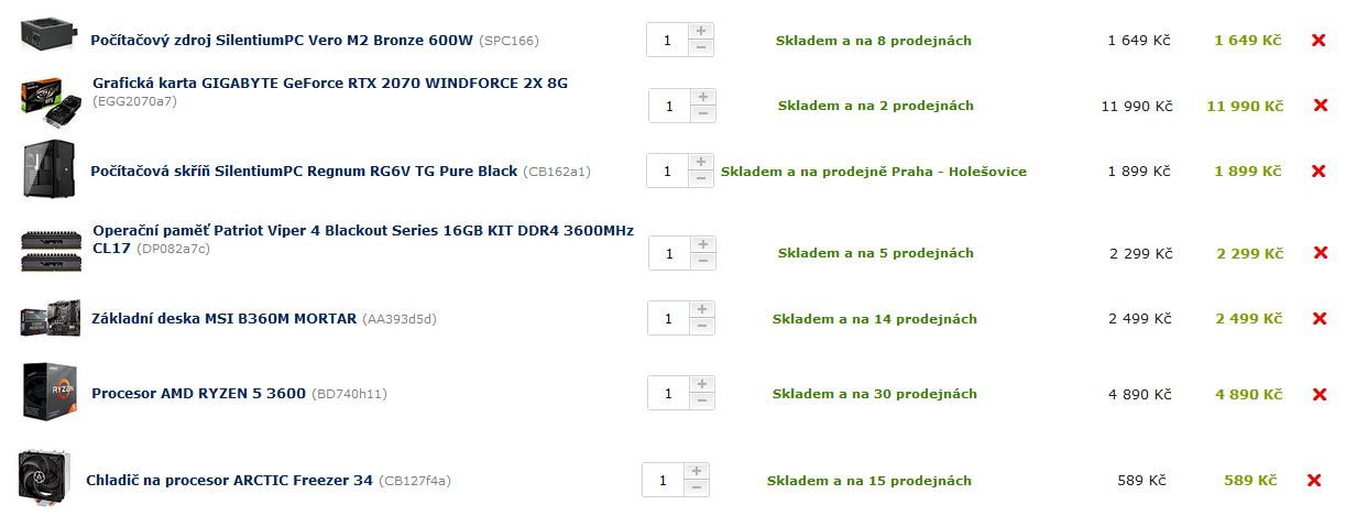 zdroj bych vzal ověřenej (jak už tu ostatně bylo navrhováno), deska je pro Intel 1151, čipset B360 (mATX by navíc v tej průhlednej bedně vypadala divně) a RTX 2070 můžeš vzít klidně o litr levnějc...