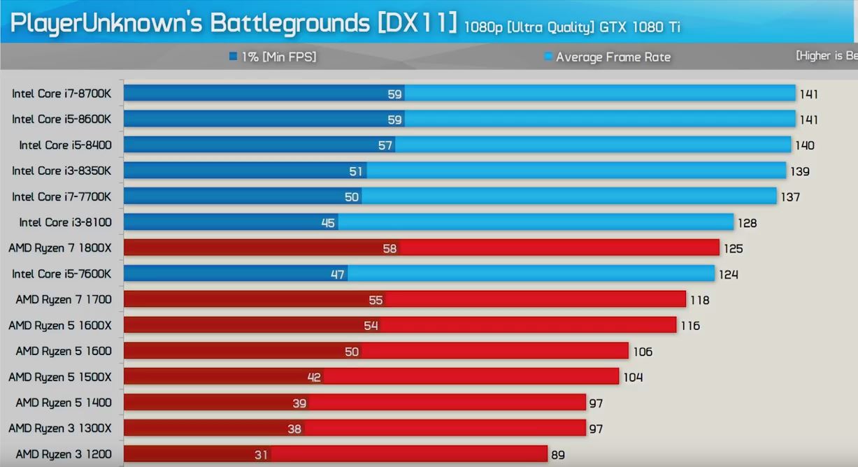 No nevím, nevím to už mi přijde teda docela dost... Ale je pravda, že PUBG je dost blbě optimalizované a možná je jen otázkou času, kdy dojde i na Ryzen a Intel už v této hře konečně dožene. Zas i5 8400 ale nesežene a pokud veme i3 8100, sice bude mít v PUBG vyšší výkon, ale v dalši půlce zas bude hluboko pod Ryzen 1600.petr22 píše:Rozdil je jen nejakych 20 fps, toho si normalni clovek nevsimne.