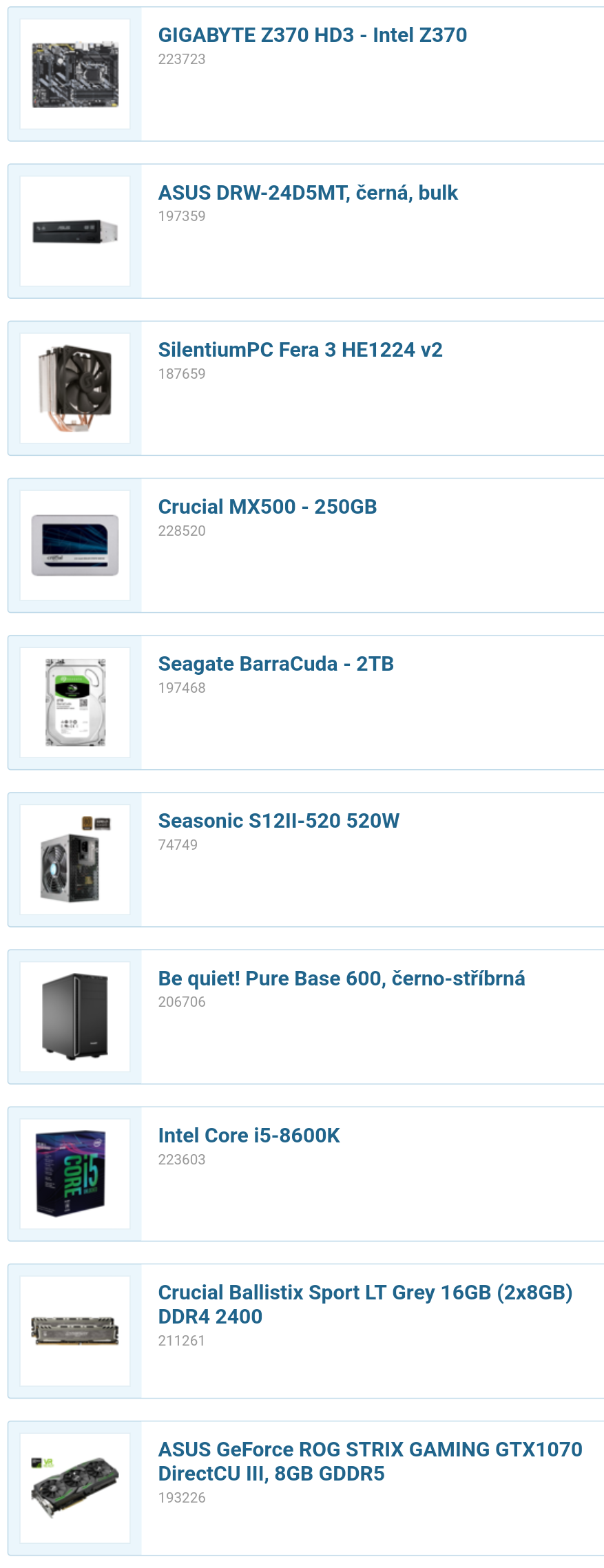 Procesor- mas i5 8600K takze asi mas v planu taktovat, odvijel bych se teda od toho, jestli ne volil bych i5 8400+levnejsi deska
