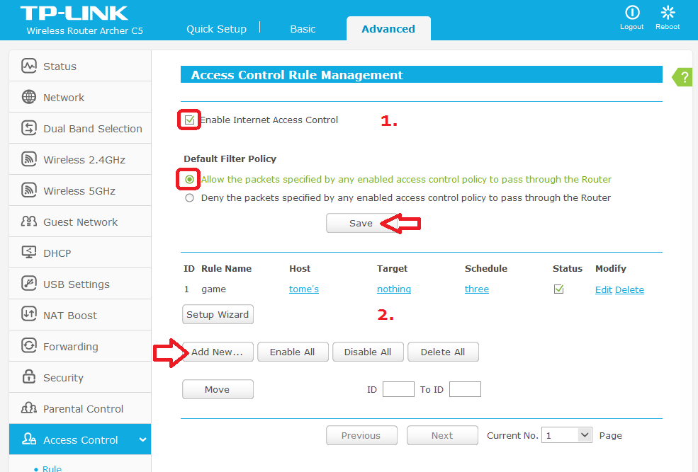 Ahoj, mám router TP-Link Archer C5 a potřeboval bych občas zablokovat určité MAC adresy, jak wifi, tak i LAN. Pokud by to šlo i nastavit na určitý čas ať to nemusím stále dělat ručně, bylo by to pohodlnější. Nechci zablokovat jen určitý web, ale zcela přístup na net. Díky za radu