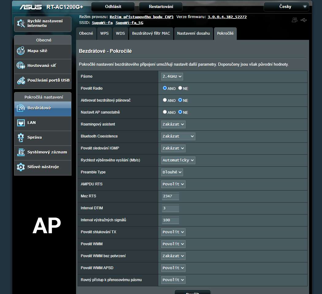 Takže teď mi vrtá hlavou, jestli vůbec ten můj router v AP běží jak má
