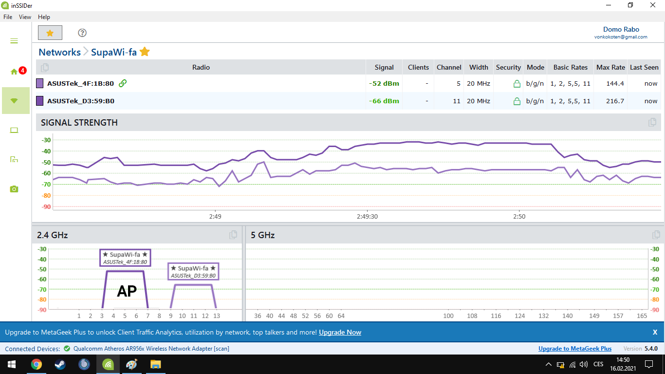"Protože v dolním patře, kde je právě ten AP router, tak měl častokrát ten 5GHZ vyšší signál."
