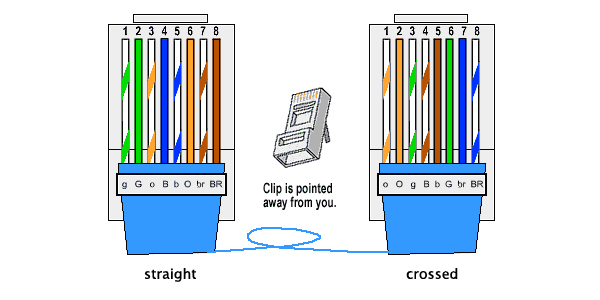 Máš jen 2 druhy zapojení "drátů" UTP kabelu. Přímý a křížený. Očividně jsi si našel druhý typ, než jsi potřeboval...