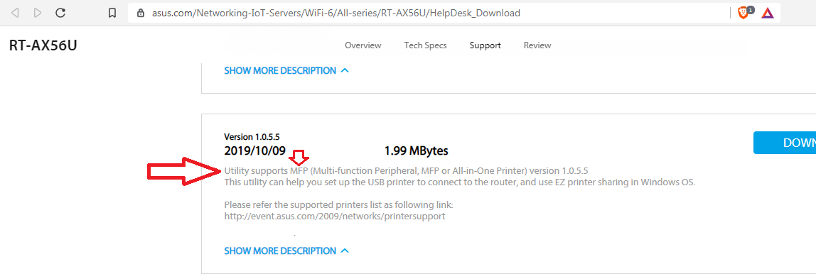 xx30: Pokud klikneš na odkaz EZ printer, nasměruje tě to na stránky podpory asusu. Tam vyplníš svůj router, klikneš na Podpora a Ovladače, vybereš systém a rozklikneš +Rozbalit vše. Najdeš MFP ovladač .