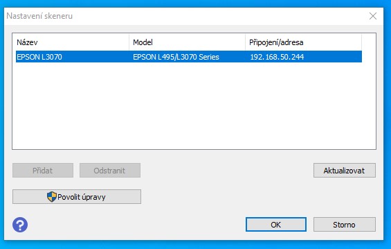 Tiskárnu jsem odpojil os stolního PC a zapojil jen do USB na routeru. Na stolním PC i na NTB jsem ji našel jako síťovou tiskárnu. Tisk funguje ze všech zařízení v pohodě, a tiskárna dokonce zůstala i připojená k wifi ( nevím jestli to není ten problém s tím scanerem ). To scanování jsem zkoušel na stolním PC právě přes Epson scan 2 a tam se nějak bijí IP adresy stolního PC, který je do k routeru připojený kabelem, to je ta 209 na konci a Epson tiskárny, to je 244 na konci. Když jsem spustil Epson scan2, zobrazila se hláška z prvního obrázku, že je scaner používaný uživatelem ( stolní PC IP .209 ) a po odklepnutí hlášky se otevře druhé okno s IP 244 což je IP adresa tiskárny ( je zobrazená i v připojených zařízeních na routeru ).