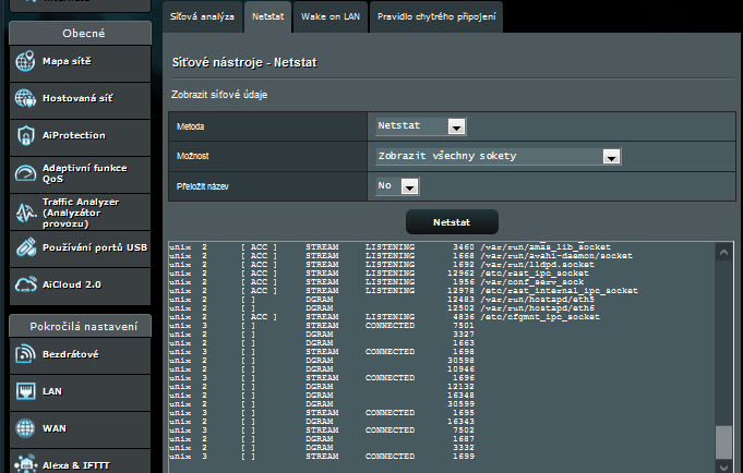 Síťové nástroje - základní nástroje pro detekci problémů v síti. Ostřílení síťaři potvrdí, že je velmi praktické, pokud je router umí.Netstat sledování portů.WakeOnLAN - funkce tzv. "magic paketu", který po odeslání na síťovou kartu probudí počítač.