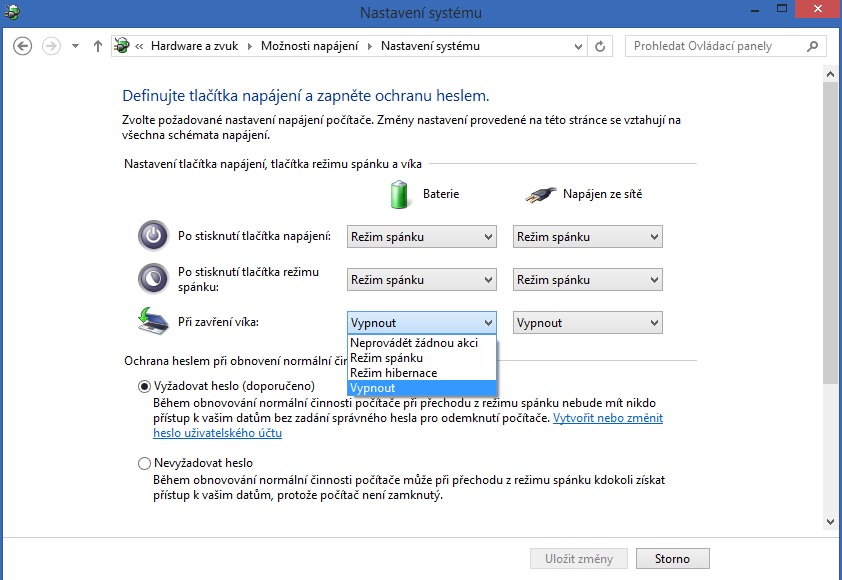 Záleží především na tom, jakou máš nastavenou činnost po zavření notebooku a pak jak se při té nastavené činnosti má ntb chovat.