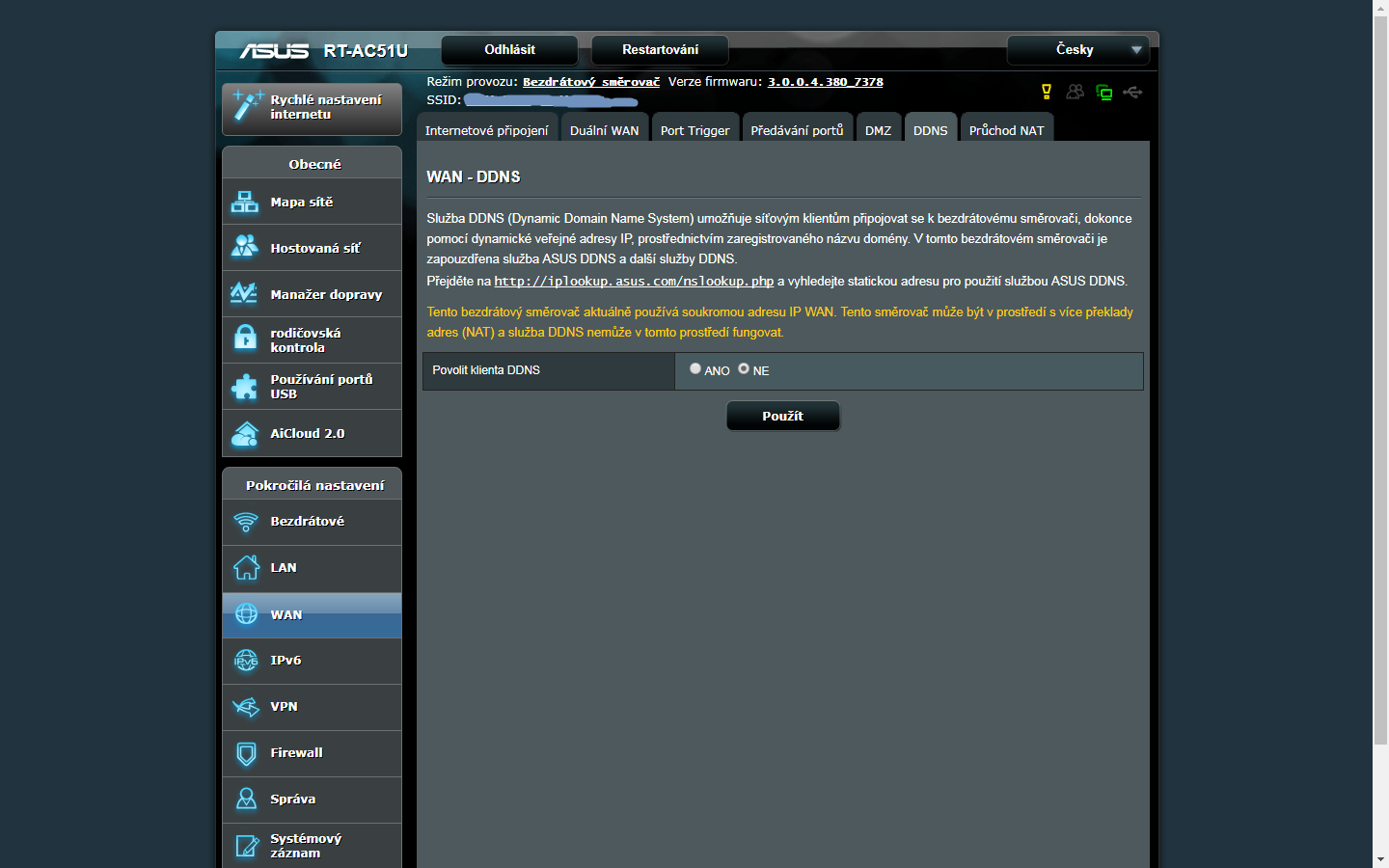 Nastavení portů, DMZ, DDNS a NAT u routeru Asus RT-AC51U - screeny