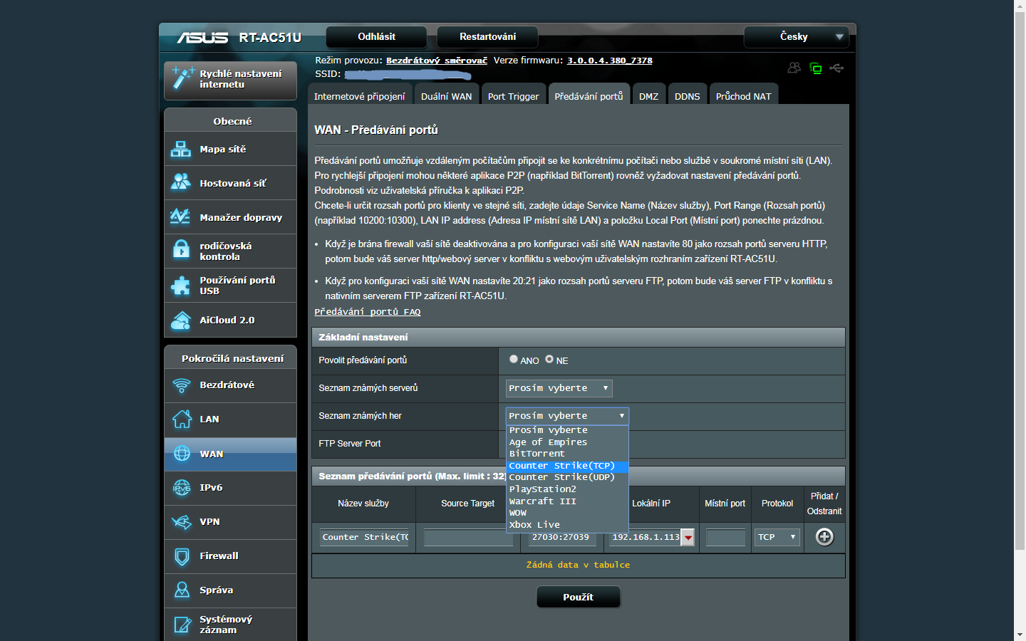 Re: Nastavení portů, DMZ, DDNS a NAT u routeru Asus RT-AC51U - screeny