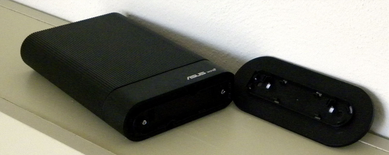 Takhle funguje držáka jako noha.Takto vypadá po odloupnutí: Držák připevněný na boku routeru: