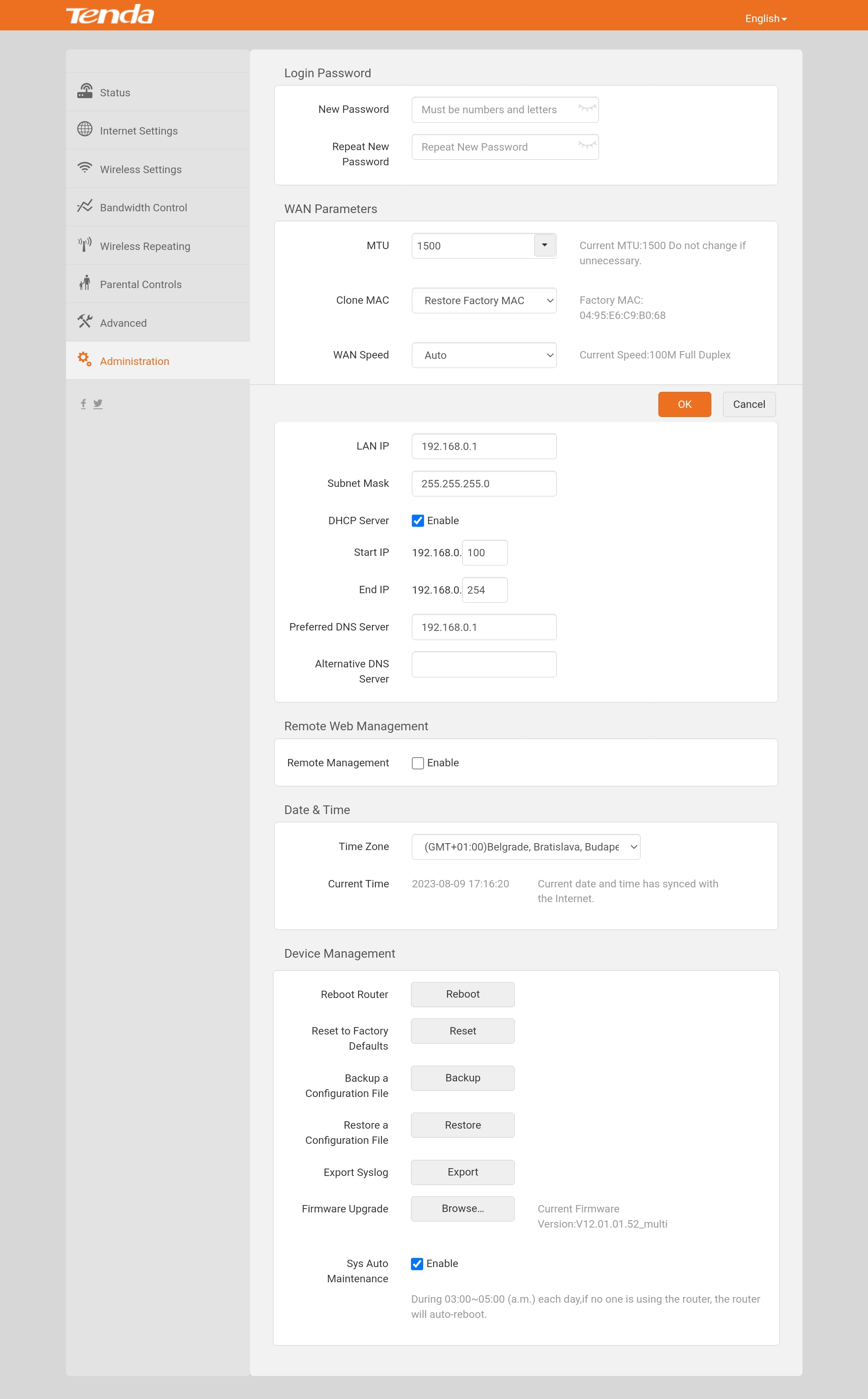 Tady jsou screeny z routeru: