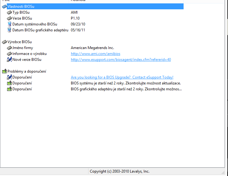 Pro tazatele: zjisti si verzi BIOS. Většinou je to číslo, které vidíš na černé obrazovce, ihned po zapnutí - ještě předtím, než začne kontrola pamětí, disků apod.