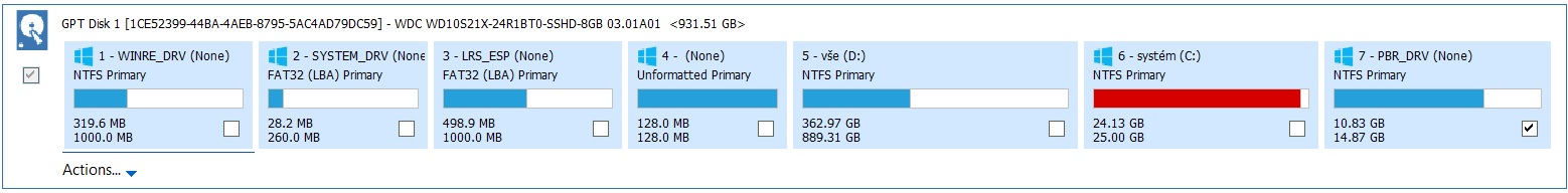No ale ony viditelné jsou jen dva, ten kde je systém a data. Ty ostatní jsou skryté, tak mě netrápí. A jde mi o zachování funkčnosti tlačítka recovery, takže proto se ptám.