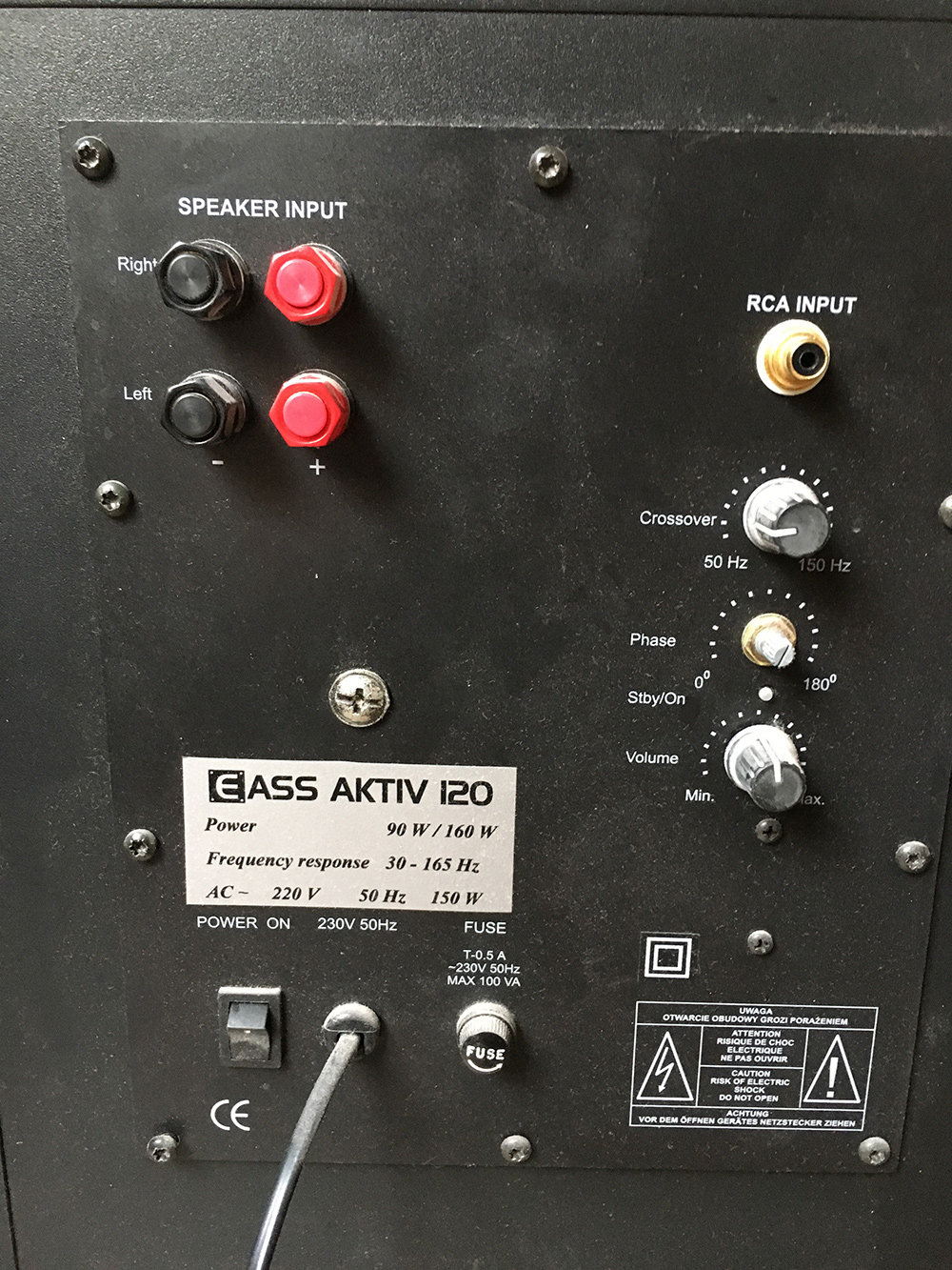 Subwoofer: EASS AKTIV 120 (https://archiwum.allegro.pl/oferta/empi ... 08142.html) [lepší informace jsem nenašel :( ]
