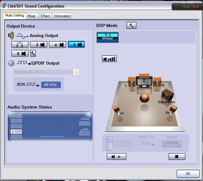 Když dám to AC-3, tak mi nejde nic. Třeba jenom když poladím na zvukovým ovladači nějaký hodnoty, a to musím dát ještě 7.1. Když tam kliknu na 5.1, tak to nejde vůbec.