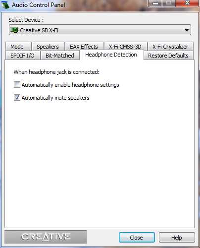 Abych se vrátil zpět k problému, tak u staré zvukovky (integrovanej realtek) jsem zapoji sluchétka s mikrákem i bedničky 2.1 bez problému. Stačilo v ovladači poklepat na příslušnej výstup a bylo nastaveno, hralo vše najednou bez problému. Pokuď todle chci udělat u zvukovky od creative (aspoň u mého typu) tak tam narazim, žádnej retasking konektoru jsem tam neoběvil a začínám mít pochybnosti, zda ta zvukovka neni dělaná jen na jedno zařízení. Nehledě na to, zvukovka mám o jeden výstup mín a to mikofon. Mikrofon teď zastupuje modrá zdířka, pokud zapojim sluchátka: modrej,zelenej-výstup zbejvaj jen 3 výstupy a to oranžovej, šedej, černej za normálních okolností bych bedničky třeba zapojil do šedého a udělal retasking konektoru aby se choval jako další přední lef/right.
