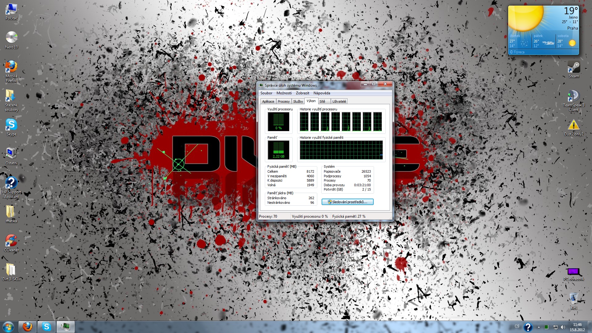 Integrovaná grafika se vypne sama! Pokud máš monitor zapojený do té GTX 550 TI. A u ramek nemáš moc veliké zatížení. Máš 8gb ram, čím více ram máš, tak tím víc si bere systém windows pro rychlejší běh. U win. 7 to tak prostě je... Co bys dělal s nevyužitou pamětí?