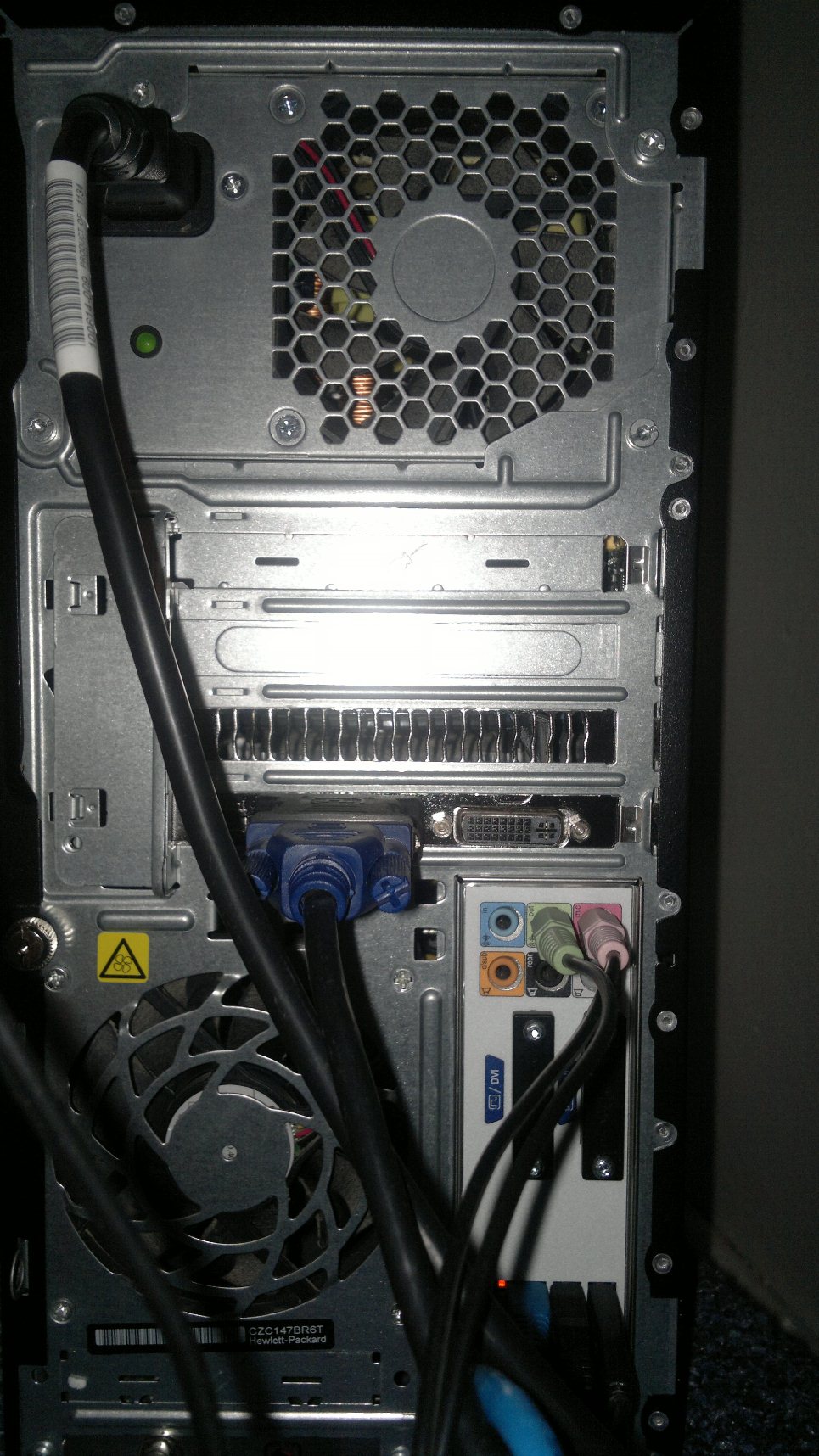 Máš ho zapojený v externí grafice. Integrovaná GK má výstupy na tom zadním panelu, kde máš připojené repro, klávesnici, síťovku, atd... A ty jsou jak na to koukám, zaslepené. Celé to PC je nějaké divné - nemáš ho otočené vzhůru nohama?