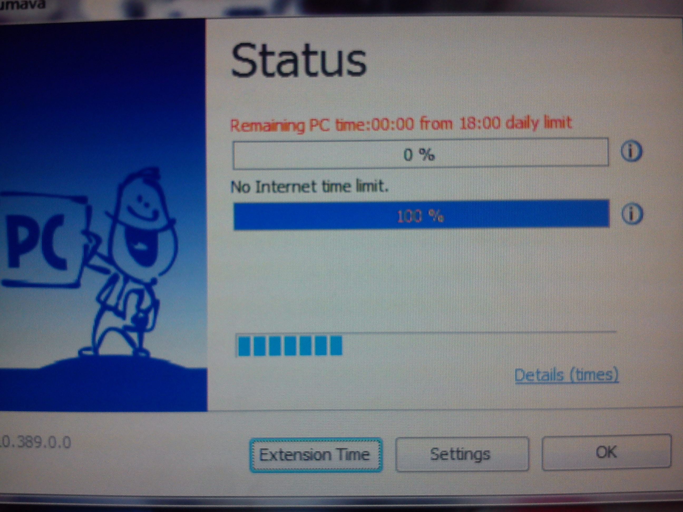 Dobrý den, dnes jsem zapnul počítač a hrál asi tak 5 hodin. Pak se mi z nenadání ukázala tabulka kde je napsáno anglicky něco v tom smyslu že mi vypršela lhůta na PC a je tam čára která když dojede tak se mi vypne PC. Než dojede mám možnost zmáčknout tlačítko "Extension Time", kde je políčko na heslo, na nějake TAN heslo... Vir nevim jestli to může být, protože jsem v ten den nic nestahoval... Prosím pomožte !!!!