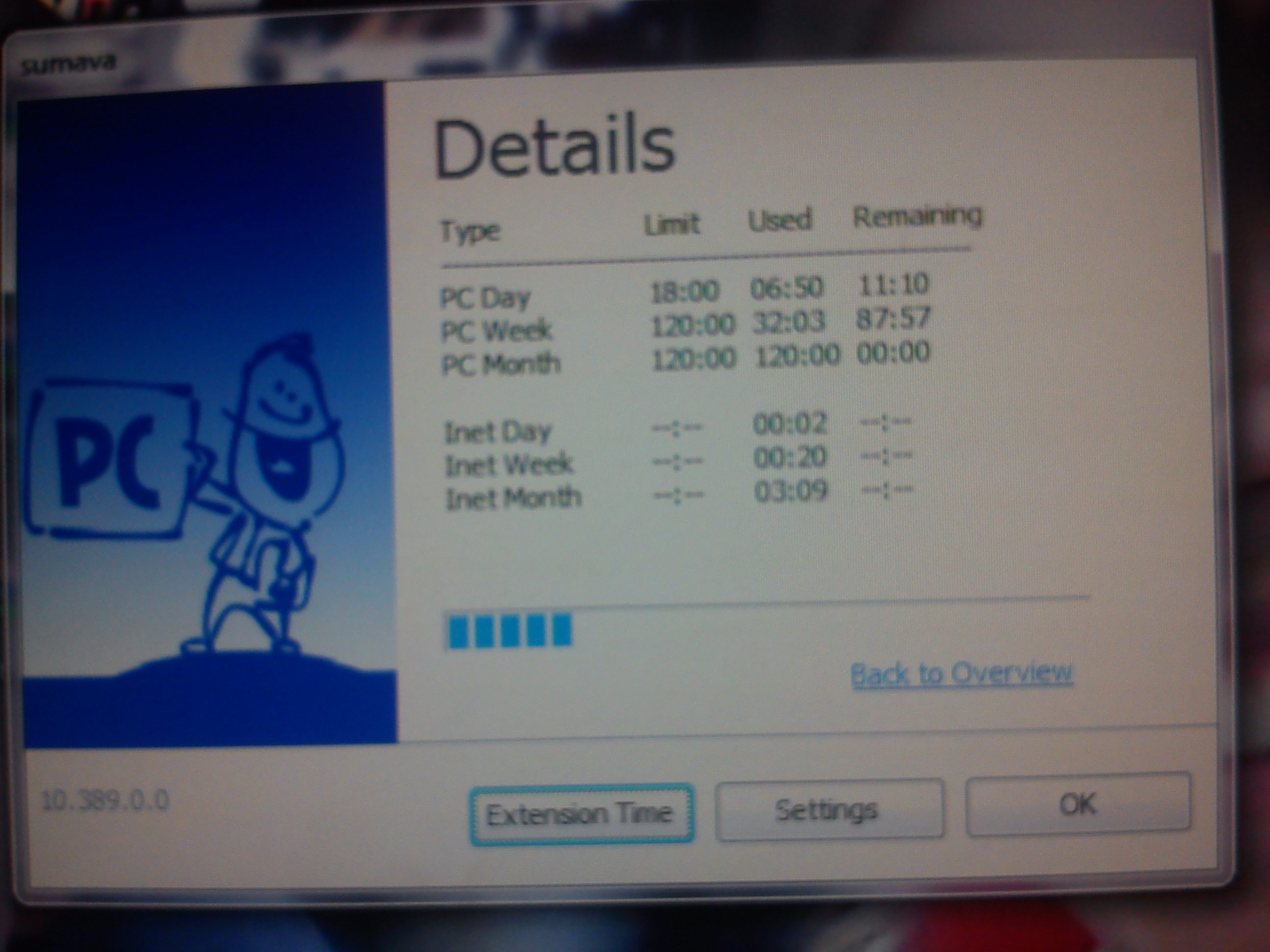 A když zmáčknu ještě jednou na "Extension Time" tak se mi ukáže toto...