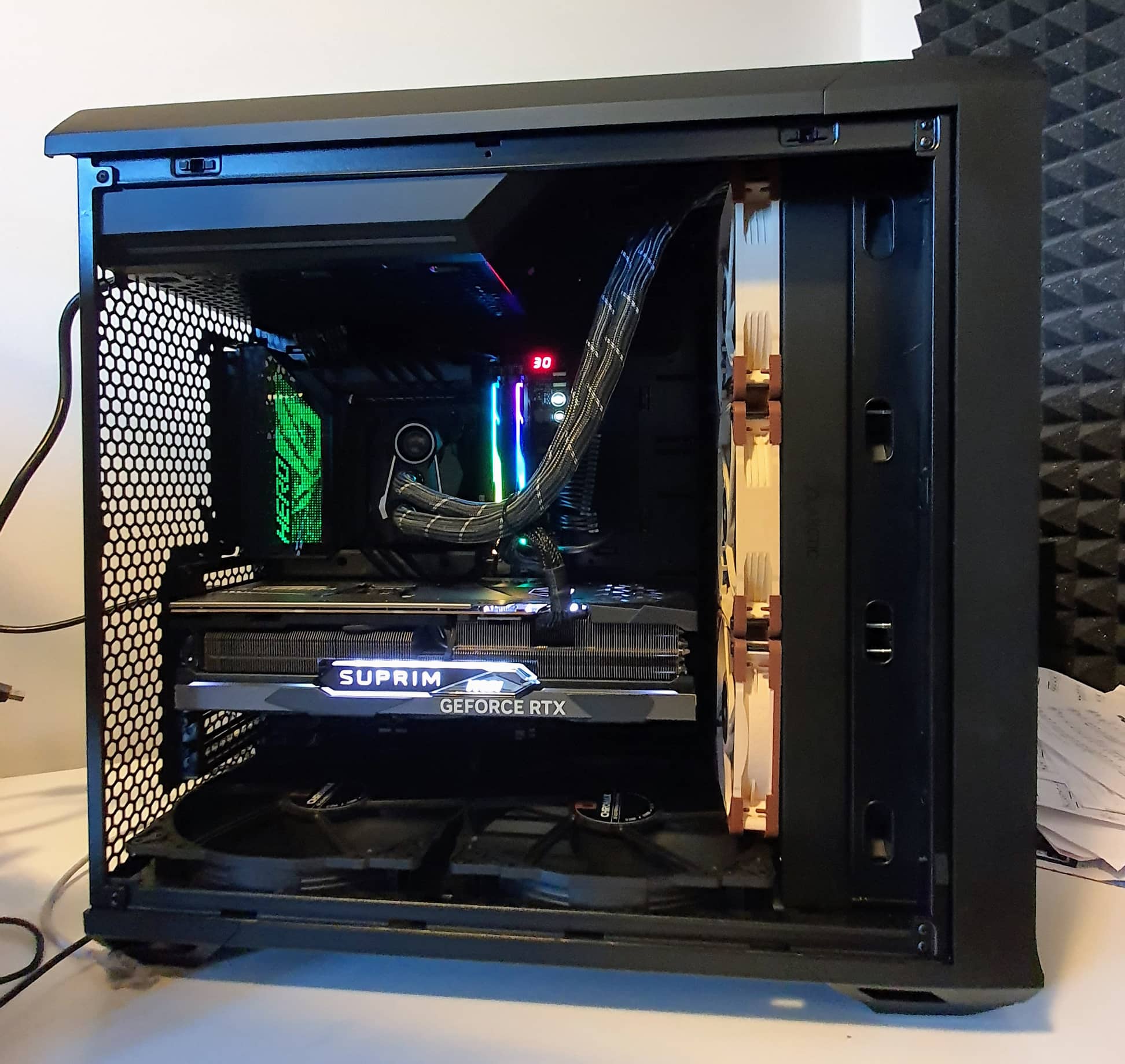 - Původně jsem kvůli spotřebě procesoru i grafiky počítal s vodním chlazením, ale nakonec jsem byl překvapenej tím, že i to se dá naprosto v pohodě (a hlavně krásně tiše) uchladit vzduchem