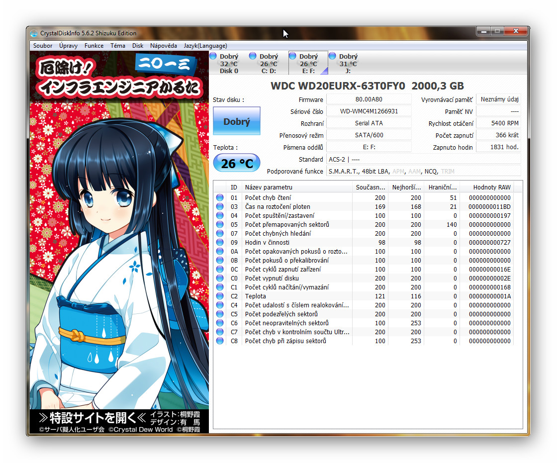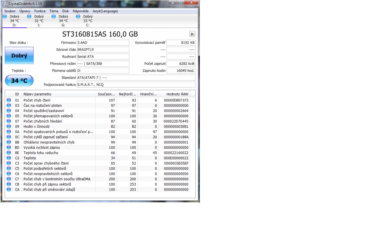 wattmetr píše:....Jde o disk v mém "zkušebním" PC, kde při poruše nehrozí žádná ztráta. Nemám ho od začátku životnosti, podle hodin a počtu zapnutí běhal dříve v nějakém serveru, ale přesto u mě už přes rok běhá naprosto spolehlivě a bez závad, stav se nezhošuje ...