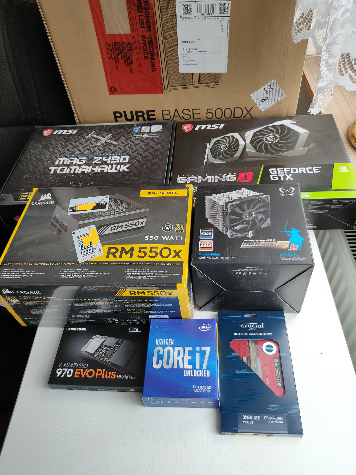 I7-10700K, MSI Z490 Tomahawk, Scythe Mugen 5 rev. B, Corsair RM550x, Crucial Ballistix 3600/Cl16 2x16 GB, Samsung 970 Evo Plus 1 TB, Patriot Viper VPN100 512 GB, MSI GTX 1650 Super Gaming X, Pure Base 500DX, FIIO K5 Pro, Edifier R1700BT, Samsung U28R550, HyperX Alloy Origins, Razer DeathAdder, Hifiman HE400SE