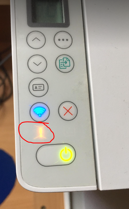 Mam tlaciaren HP LaserJet MFP M140w, ktoru som bezne pouzival a nebol s nou nejaky vacsi problem. V pondelok som tlacil nejake dokumenty, cca 1 list A4 za 20 minut. Vsetko fungovalo v poriadku, ale zrazu (bez vypnutia PC/tlaciarne/routera) zacal na tlaciarni blikat oranzovy vykricnik a prestala tlacit. Pise mi to, ze mam skontrolovat HP konto a tam sa dozviem viac. Bohuzial, HP konto mi ziadny KONKRETNY problem nevyhodi a ja vobec neviem, ako to riesit. (zakruzkovany oranzovy vykricnik blika)