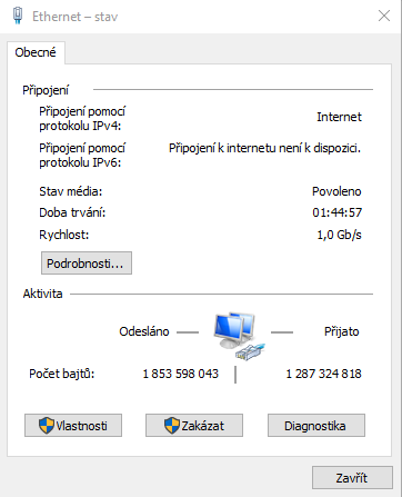 Rychlost připojení síťové karty by měla být v pořádku, zkontroloval jsem a viz. příloha je nastaveno 1Gb/s