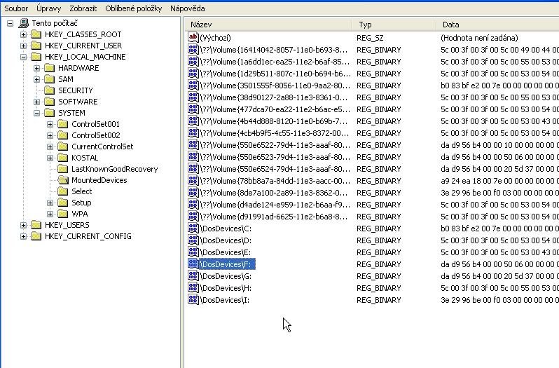 Spíš bych zkusil: HKEY_LOCAL_MACHINE\SOFTWARE\Microsoft\Windows Portable Devices\Devices