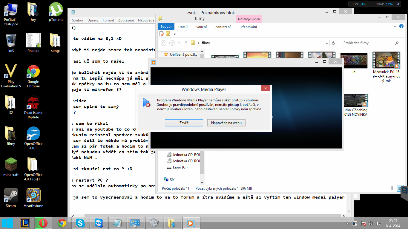 Nejde mi zvuk , mikrofon ani video , když zapnu nějaký film nebo video hodí mi to Error /obrázek v příloze /