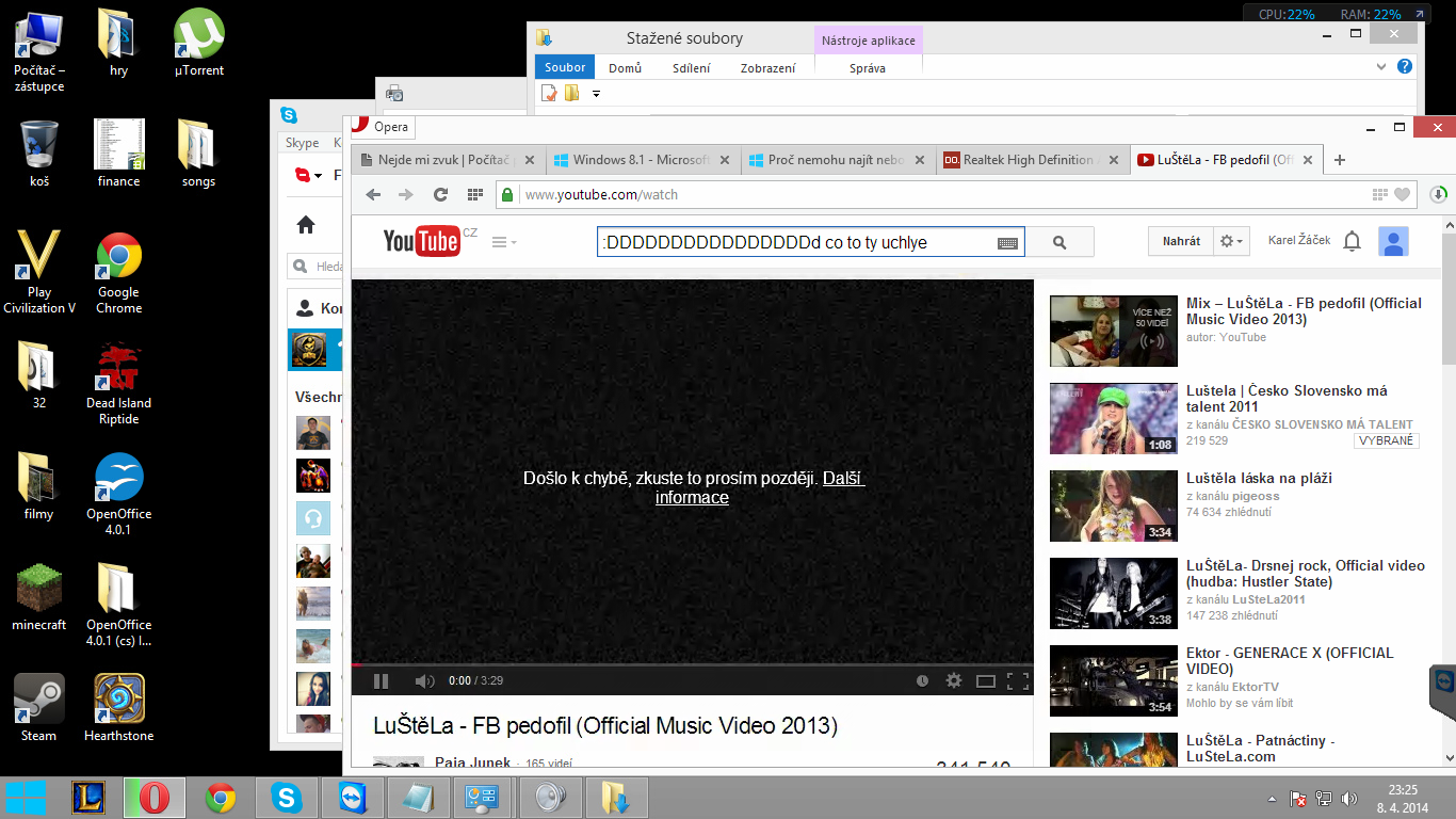 A když si pustím video na YT tak mi to hodí /obrázek v příloze /