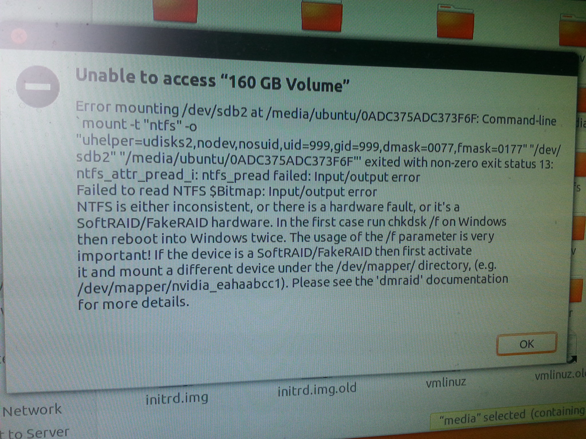 Takže jsem si řekl: ,,Možná bude nutná přeinstalace. Načtu si z CDčka Linux, zálohuji si data a jdu na to.", ale co mne v Linuxu nepřekvapí, k disku C: nemohu přistupovat(chybová hláška v příloze).