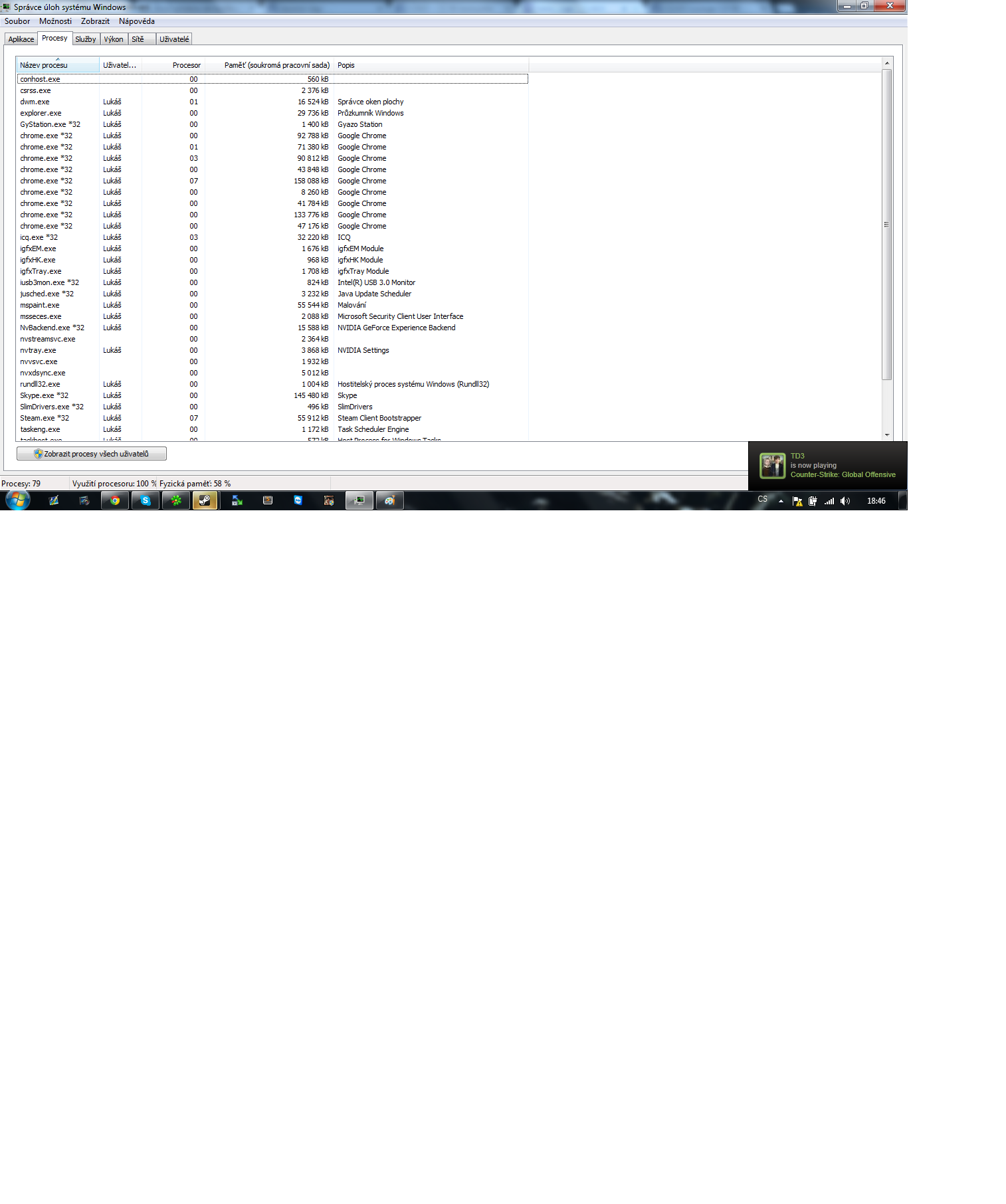 mám problém, při hraní hry, jako je CSGO mi dost často padají FPS a nedá se to ani hrát. Když zapnu ntb a mrknu přes správce úloh na využití CPU, mám tam furt 100%.