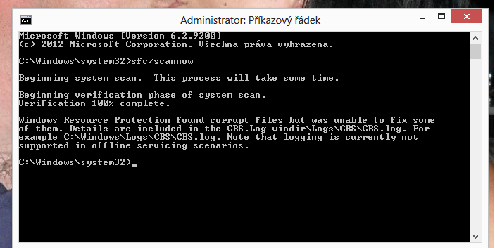 hmmm, tak to našlo chyby, ale píš,že není schopný je opravit, podrobnosti jsou v CBS.log