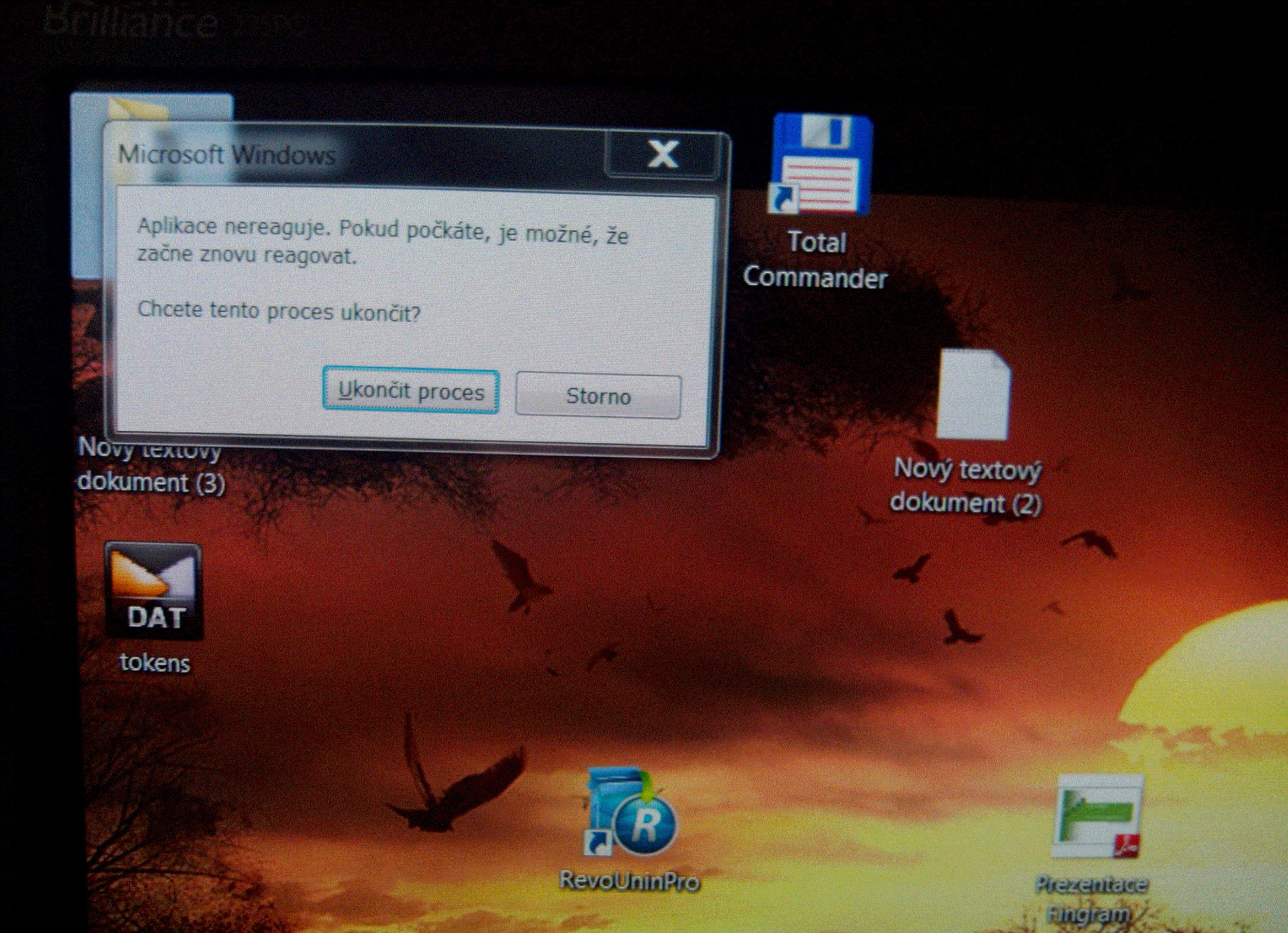 Systém windows 7 64 bit mi dosud běžel bez problémů. Objevila se však malá chyba kterou jsem se rozhodl vyřešit Nástrojem pro obnovu systému od bodu určení. Obnova proběhla úspěšně, jak naběhne plocha tak krátce po tom se ukazatel myši změní na "hodiny", plocha zešedne (jako když přestane odpovídat program) a nejde na nic kliknout. Po chvíli čekání se objeví hláška že Aplikace nereaguje (viz příloha). At už vyberu cokoliv (Ukončit proces, počkat) po chvíli se objeví ta samá hláška. Zkoušel jsem obnovu systému z jiného bodu ale nepomohlo to.