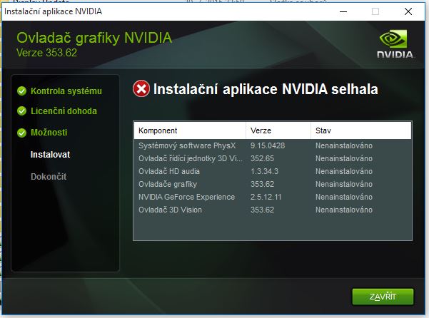 Zdravím nainstaloval jsem Windows 10 vše běží v pohodě až na to že mě nejdou nainstalovat ovladače na grafiku a tudíž mám obraz jen na jednom monitoru který je zapojený přes DVI a ten druhý který je HDMI tak nejde.. Vždy když instaluju ovladače tak to napíše Instalace selhala..