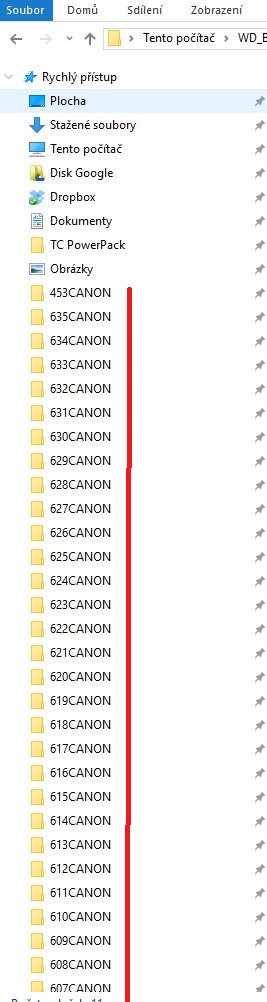 Průzkumík ve WIN10 ukazuje seznam použitých adresářů, o které nemám zájem