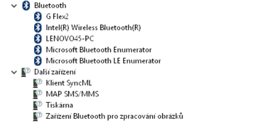Jestli budeš vědět i pod tím Bluetooth, proč tam jsou ty otazníky, co tam chybí doinstalovat za ovladače? Možná asi nějaký ten Bluetooth ovladač.