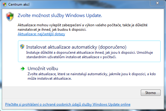 Po každý kliknu na Instalovat aktualizace automaticky.