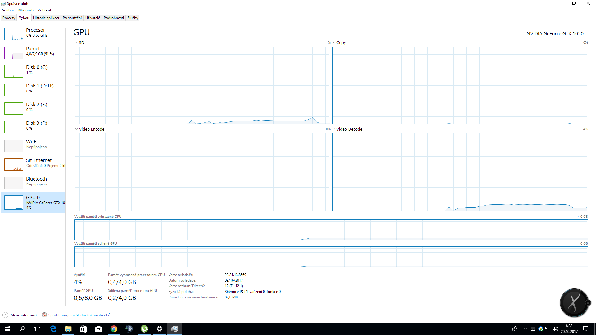 Nově také můžeme vidět ve správci úloh svou grafiku !!! . Nevím k čemu vám to bude dobré. Ale je to tam tak je to tam. Zde můžete vidět jaké funkce vám to ukazuje. 3D, video encode a další procesy pro tuto danou grafiku... Což nevím fakt k čemu to je :-D. Opět viz obrázek